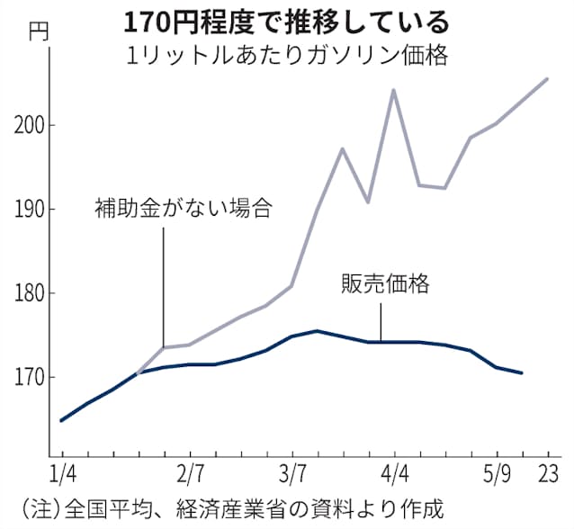 ガソリン価格170 4円 補助金の上限突破 36 1円支給へ 日本経済新聞